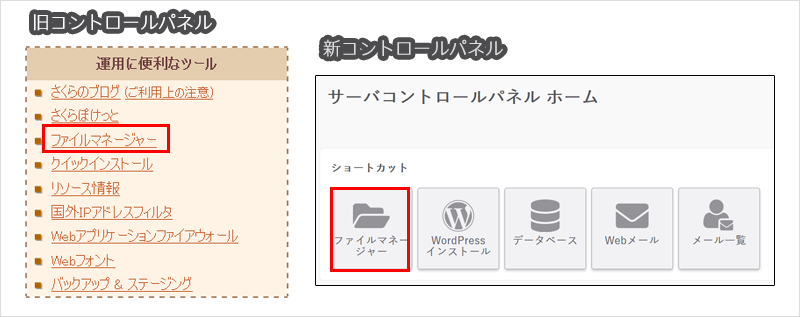 サーバコントロールパネルから利用できるファイルマネージャーは、