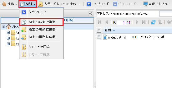 同じ階層に、指定した名前でファイル、もしくはフォルダがコピーされます。