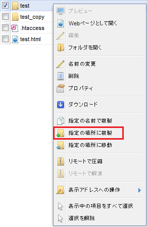 ファイル、もしくはフォルダを右クリックし、表示されるメニューから『指定の名前で複製 』を選択することでも、同様の操作が行えます。