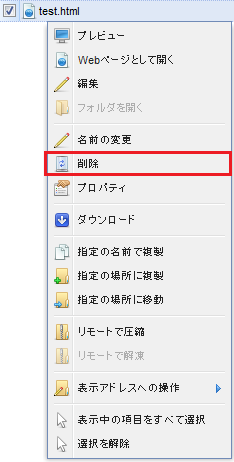 ファイル、もしくはフォルダを右クリックし、表示されるメニューから『削除 』を選択することでも、同様の操作が行えます。