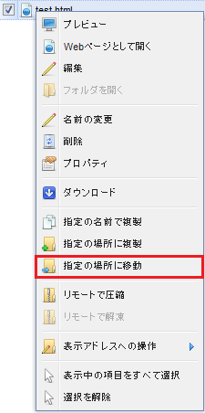 ファイル、もしくはフォルダを右クリックし、表示されるメニューから『指定の場所に移動 』を選択することでも、同様の操作が行えます。