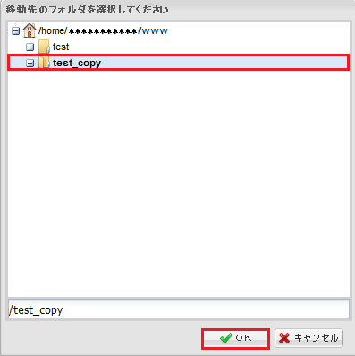 フォルダ選択画面が表示されます。移動先のフォルダを選択し、『OK 』ボタンをクリックします。