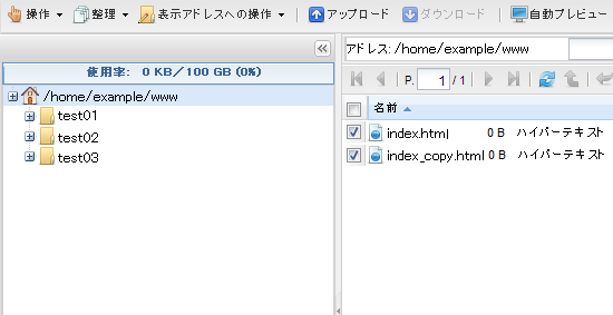 - ファイルマネージャーでは、/home/アカウント名/www より上位階層にはアクセスできません。