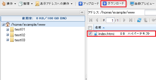 125Kbyte以上のファイルは、FTPソフトでお客様のパソコンにダウンロードし、編集後FTPソフトにてアップロードしてください。