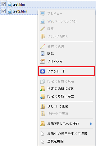 ファイル、もしくはフォルダを右クリックし、表示されるメニューから『ダウンロード 』を選択することでも、同様の操作が行えます。