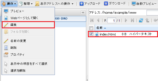 - ※ サーバにかかる負荷を考慮して 125Kbyte以上 のファイルをファイルマネージャー上で編集することはできません。
