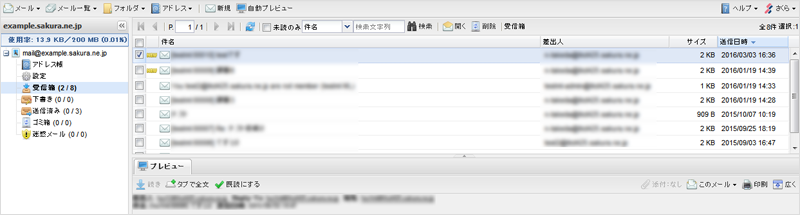 ウェブブラウザでメールの確認や送受信などを行うことができる画面です。