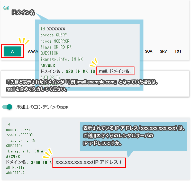 この数字が異なる場合、そのドメインのメールはご利用のさくらのレンタルサーバを使用していません。
