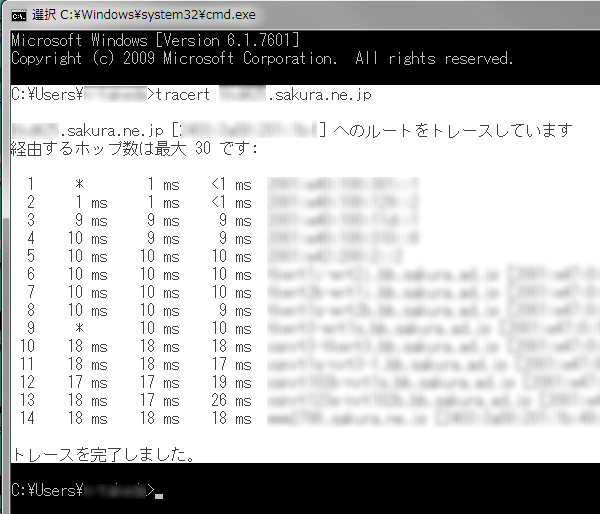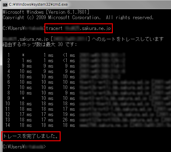 サポートへお問い合わせをいただくにあたり、トレースルートコマンド(tracert、traceroute)の実行結果を