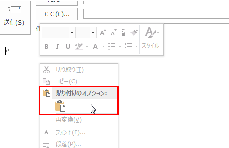 メール本文の入力欄上で右クリックし、『 貼り付け 』を選択するなどして、トレースルートの結果を貼り付けます。