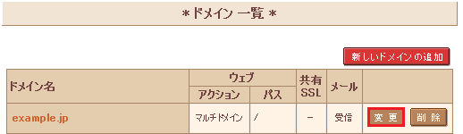 個別設定にしたドメイン名の 『変更』 をクリックします。