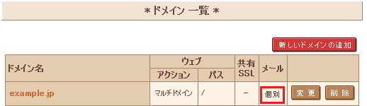 ※ ドメインの『個別設定』を行った場合、メーリングリストのドメインとして設定(利用)することが出来ません。予めご了承ください。