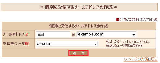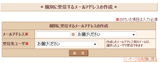 ページ下部の『 個別に受信するメールアドレスの作成 』からメールアドレスを作成します。