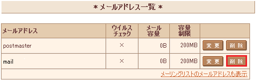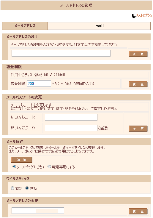 | メールアドレスの変更 | メールアドレス名を変更できます。 |