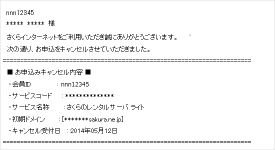 「さくらのドメイン取得」など、会員メニューから解約できないサービスの場合、以下のご案内を確認いただき、メールでキャンセルをご依頼ください。