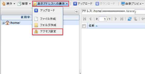 上部メニューの『 表示アドレスへの操作 』をクリックし、『 アクセス設定 』を選択します。