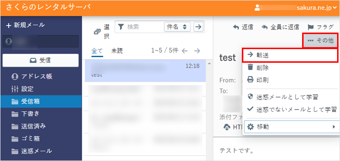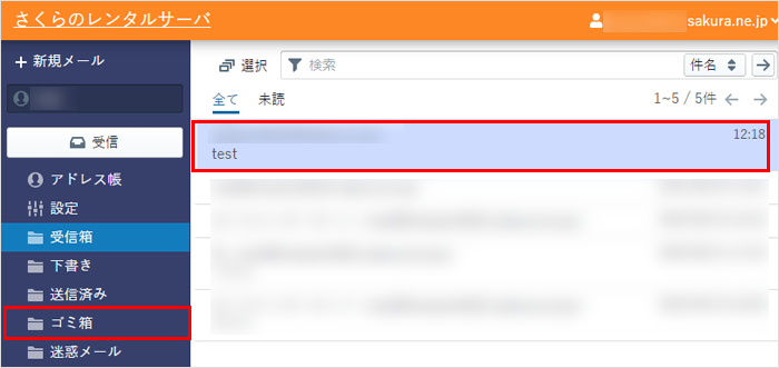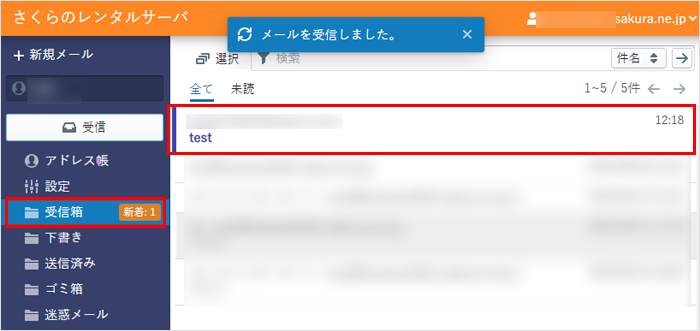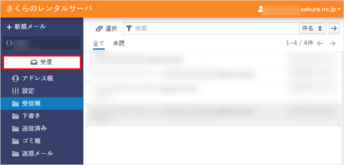 • メールソフトでメールを受信しており、かつ、メールソフトの設定で「サーバーにメールを残す」設定をしていない場合は、メールソフトで受信されたメールはウェブメールでは確認できません。