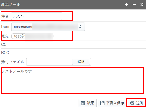 • 個別ドメイン受信に設定されているメールアドレスを送信元(From:)に指定してメールの作成や返信をすることはできません。