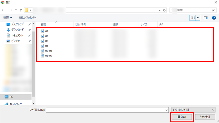 3ファイルの選択画面が表示されます。添付したいファイルを選択し、『開く』をクリックします。