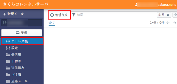 • ドメインごとのメールアドレス一覧 (設定例:mail@example.sakura.ne.jp)