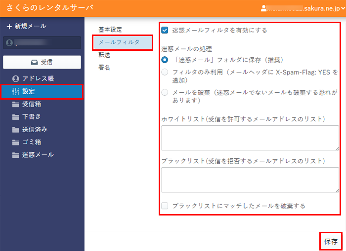 メールフィルタの設定(迷惑メールフィルタ・許可リスト・拒否リスト)
