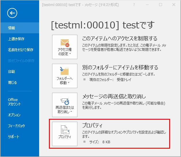 2対象のメールを一覧から選び、右クリックし『 プロパティ(R) 』をクリックします。