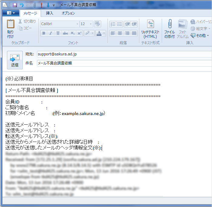 弊社では、調査のため『メールのヘッダ情報』をご提供いただく場合がございます。