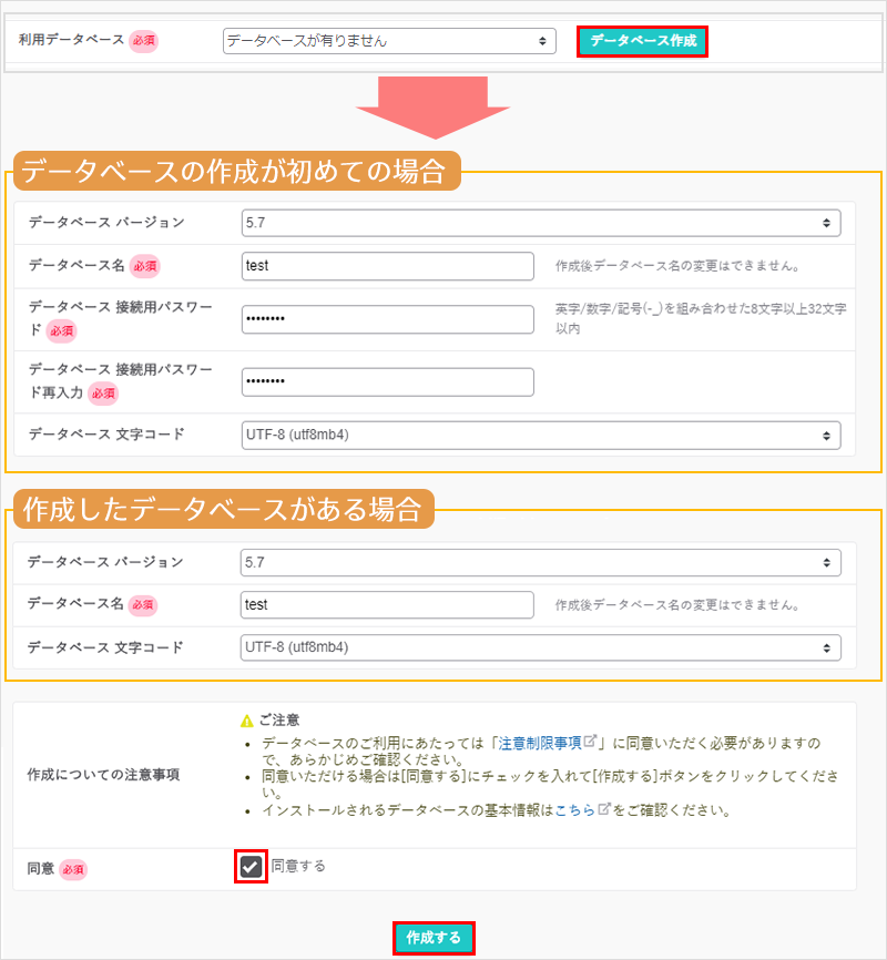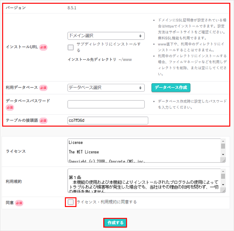 ご同意いただける場合、 『同意』にチェックを入れ、『作成する』をクリックします。