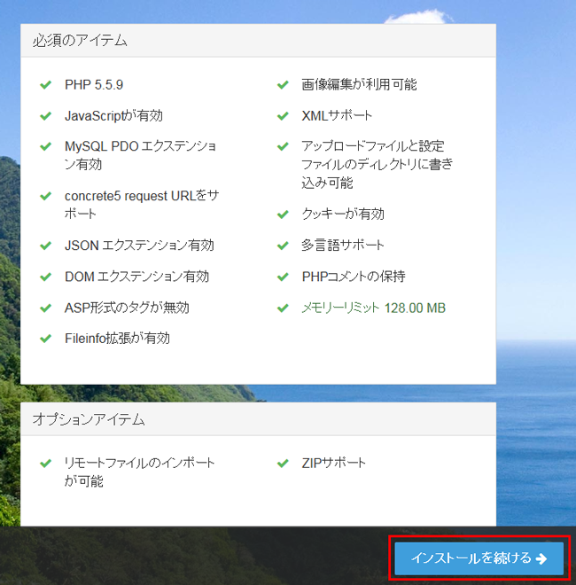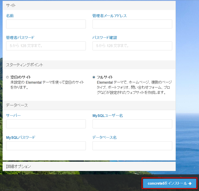 concrete5で利用するデータベースの作成がお済みの場合は手順【2】へ進みます。