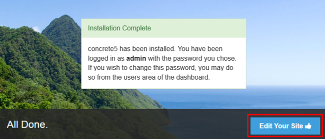 4以下の画面が表示されたら、concrete5のインストールは完了です。