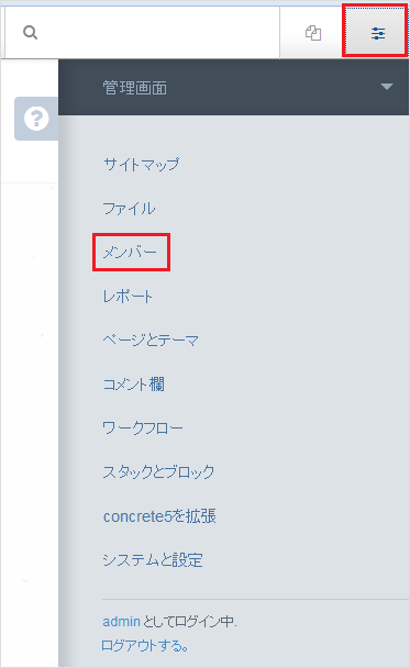 adminとしてログインした状態になっていますが、「admin」は他社からも推測しやすいユーザ名のため、「Edit Your Site」をクリックした後、念のため管理画面の「メンバー」からadminの名称変更をご検討ください。