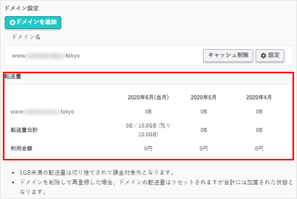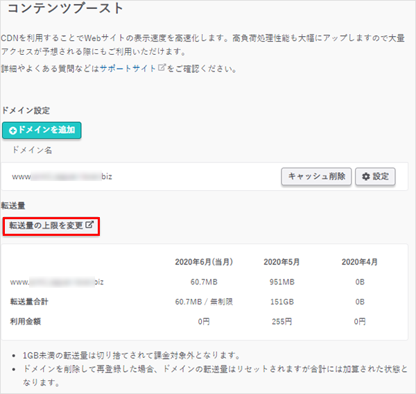 また、コンテンツブーストが利用停止状態となりキャッシュが無効化されると、レンタルサーバーの転送容量カウント対象になります。