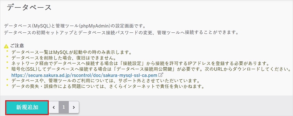 暗号化(SSL)して接続する場合は、「データベース接続用公開鍵」が必要です。