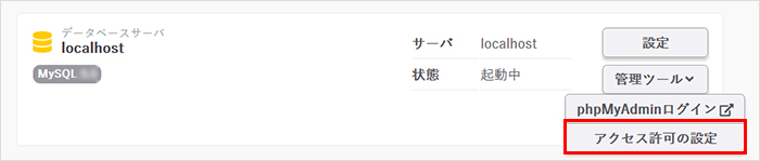 2データベースの『管理ツール』をクリックし『アクセス許可の設定』を選択します。