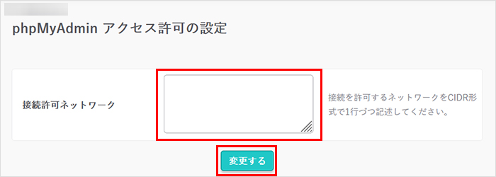 3接続を許可するネットワークをCIDR形式で1行づつ記述し、『変更する』をクリックします。