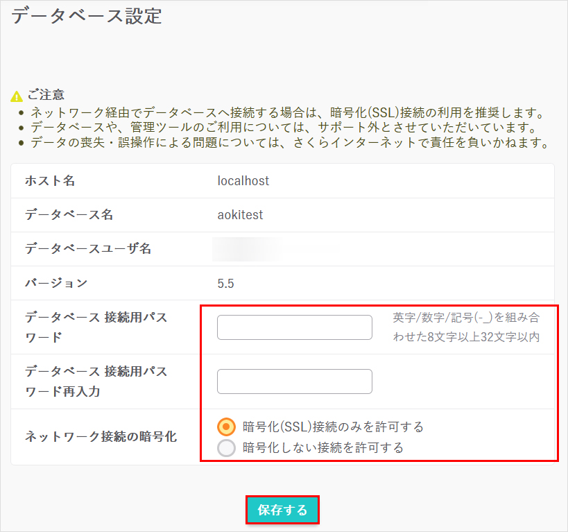 そのため、盗聴などによるデータ漏洩の可能性がございます。データベースに機密情報を保存している場合は、暗号化する接続を推奨しております。