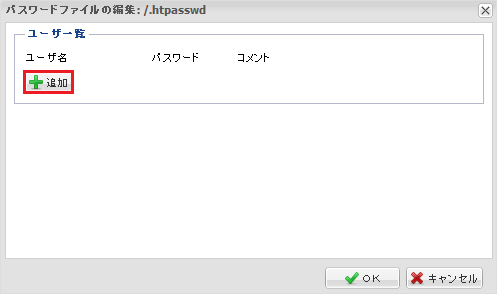 6パスワードファイルの編集画面が表示されます。 『 追加 』ボタンをクリックします。