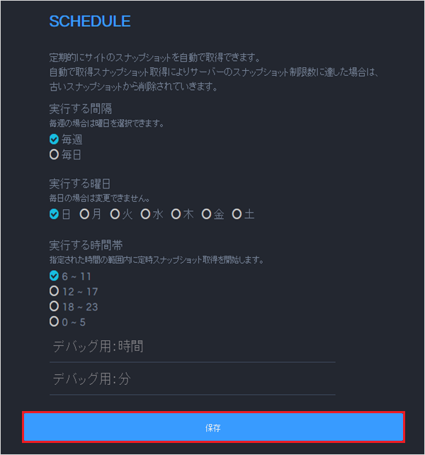 4スケジュールを設定し『保存』をクリックします。