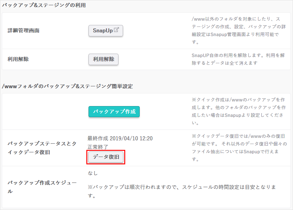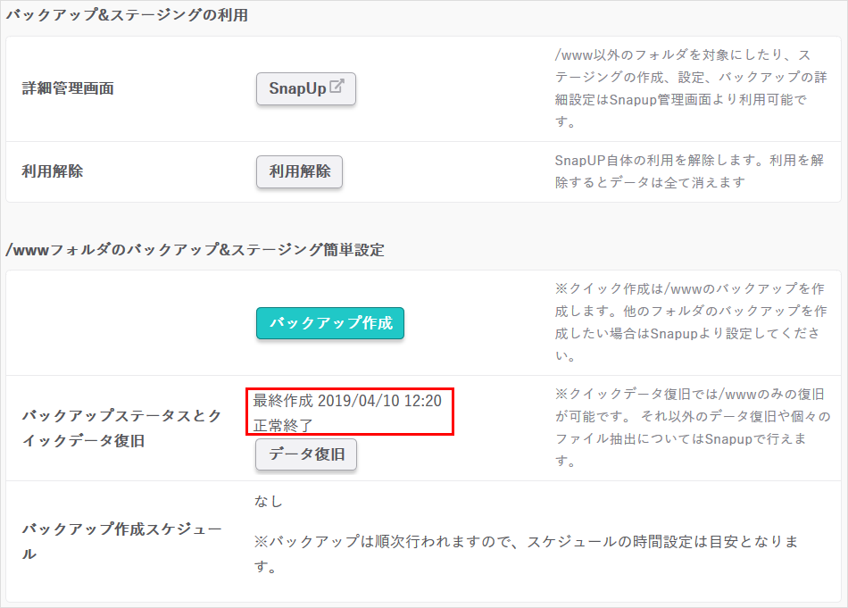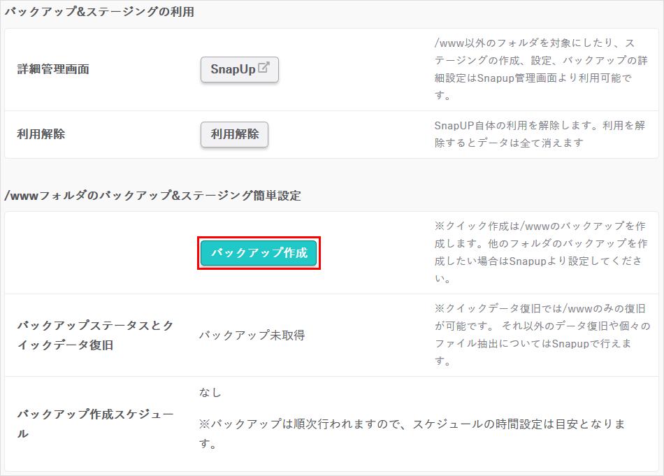 WordPressのバックアップの場合は、WordPressのスナップショットを作成する手順をご参照ください。