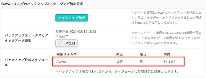 • スナップショット(バックアップ)には容量制限やファイル数制限があります。