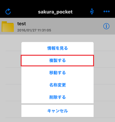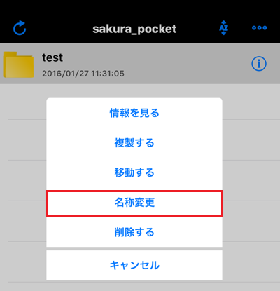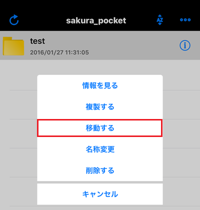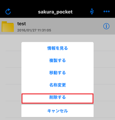 5さくらぽけっとの利用フォルダをタップしメニューを表示させます。