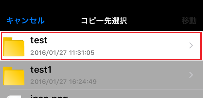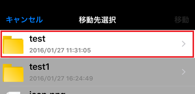 3移動先選択画面が表示されますので、移動先のフォルダまで移動します。