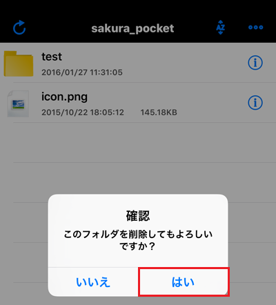 3確認画面が表示されますので、削除する場合は『 はい 』をタップします。