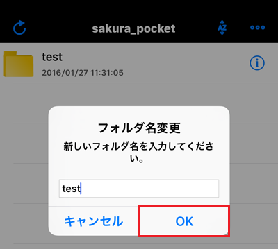3確認画面が表示されますので、変更後のファイル名を入力し『 OK 』をタップします。