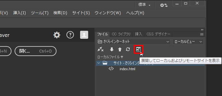 1『 展開してローカルおよびリモートサイトを表示 』ボタンをクリックします。