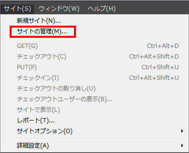 2『 サイト(S) 』メニューから『 サイトの管理(M)… 』をクリックします。