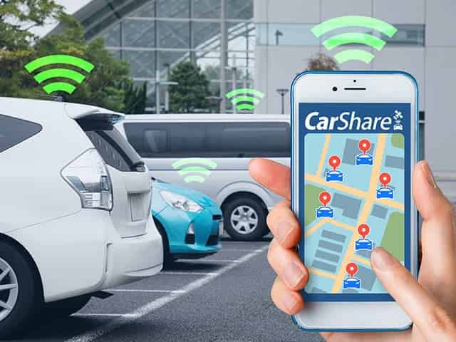 駐車場を活用したカーシェアリングのサービスは、駐車場にカメラやセンサーを取り付け、常に監視することで車が止まっているかどうかを認識し、車両の利用可能な状態を把握できる仕組みです。ユーザはクラウドサービスで自動車の空席が確認できたら、車両を予約しレンタカーのように利用できます。