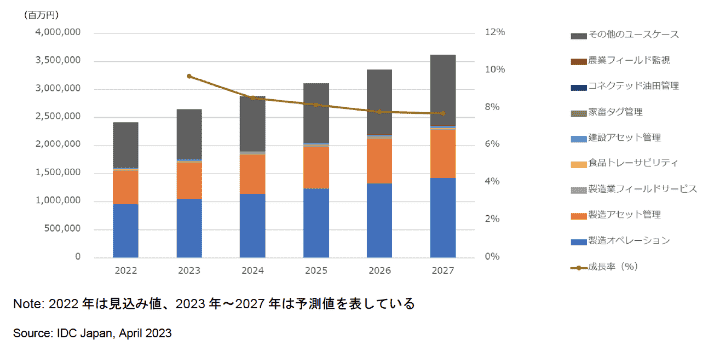 出典:IDC Japan, 2023年4月「国内IoT市場 産業分野別 テクノロジー別予測、2023年~2027年」(JPJ49204323)