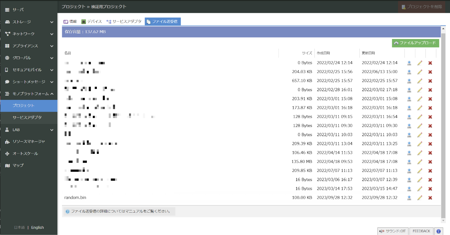 SIMが所属しているプロジェクトの「ファイル送受信」タブを選択します。