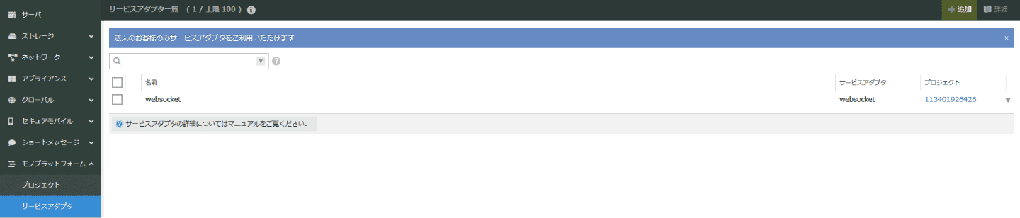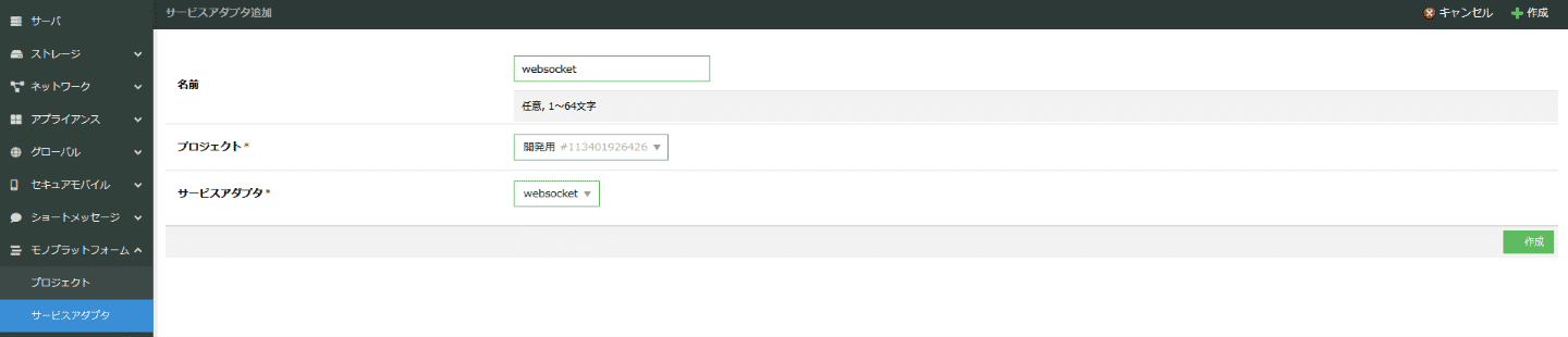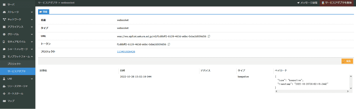 モノプラットフォームのサービスアダプタより、wss://から始まるWebSoketのURLをコピーします。